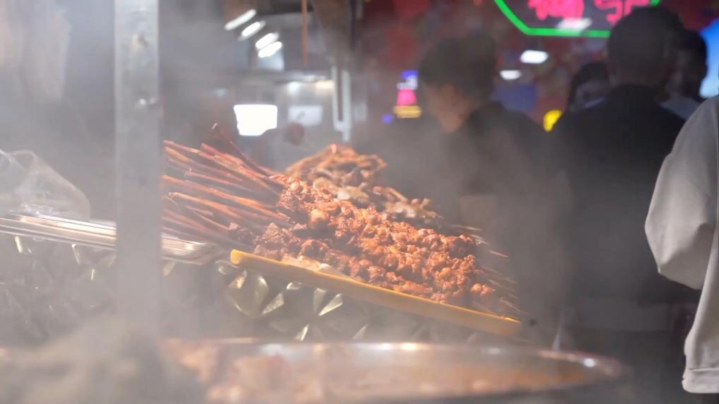 新疆和田夜市成了不少游客的“打卡地”,各种各样的美食摊位前坐满了食客。