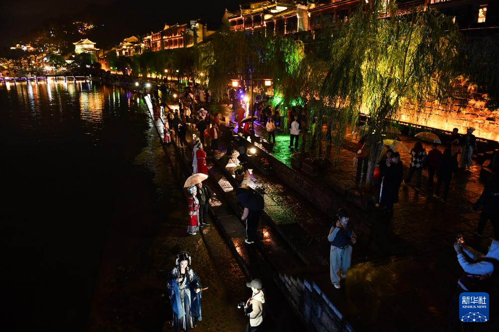 凤凰古城位于湖南省湘西土家族苗族自治州凤凰县,沱江穿城而过,城内古建筑、特色民居众多。近年来,当地持续规范旅游市场,发展旅拍等旅游服务。游客们身着带有当地民族特色的服饰漫步沱江两岸,欣赏古城美景,感受民俗风情。pagebreak