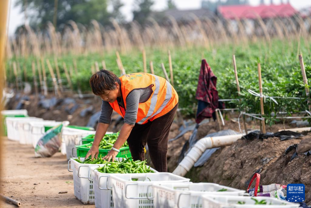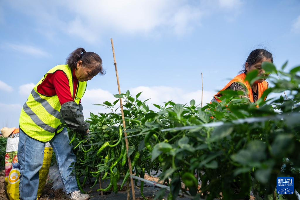 10月14日,在南县华阁镇新安村,村民在采摘辣椒。新华社记者 陈思汗 摄pagebreak