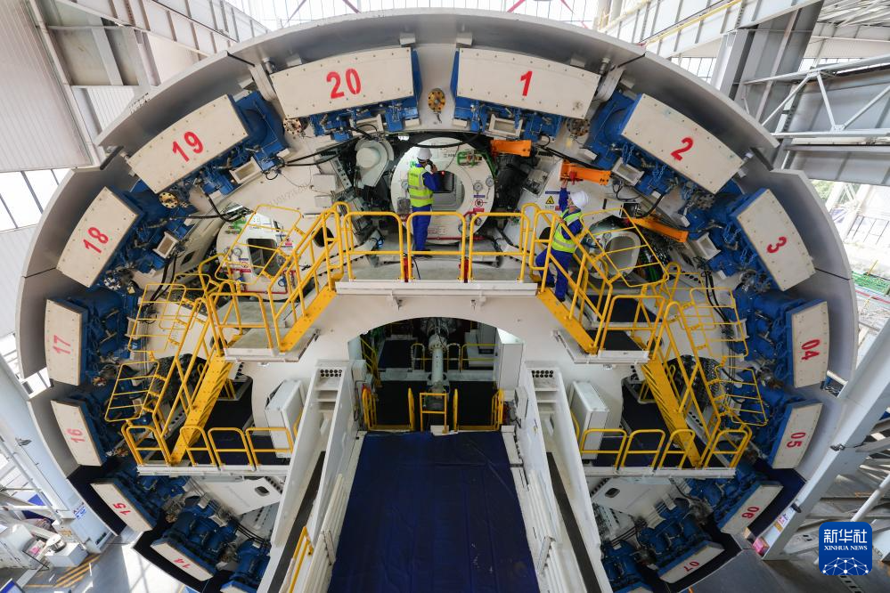 10月24日在铁建重工长沙第一产业园拍摄的“龙岗二号”盾构机。新华社记者 陈泽国 摄