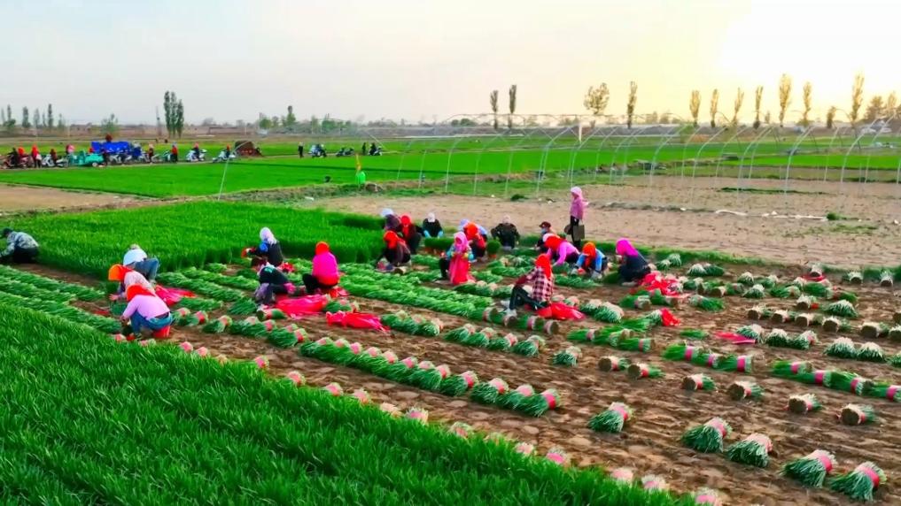 宁夏灵武市郝家桥镇的万亩设施韭菜时下迎来最佳收割期。凭借高品质,这里的韭菜成为市场上的抢手货。