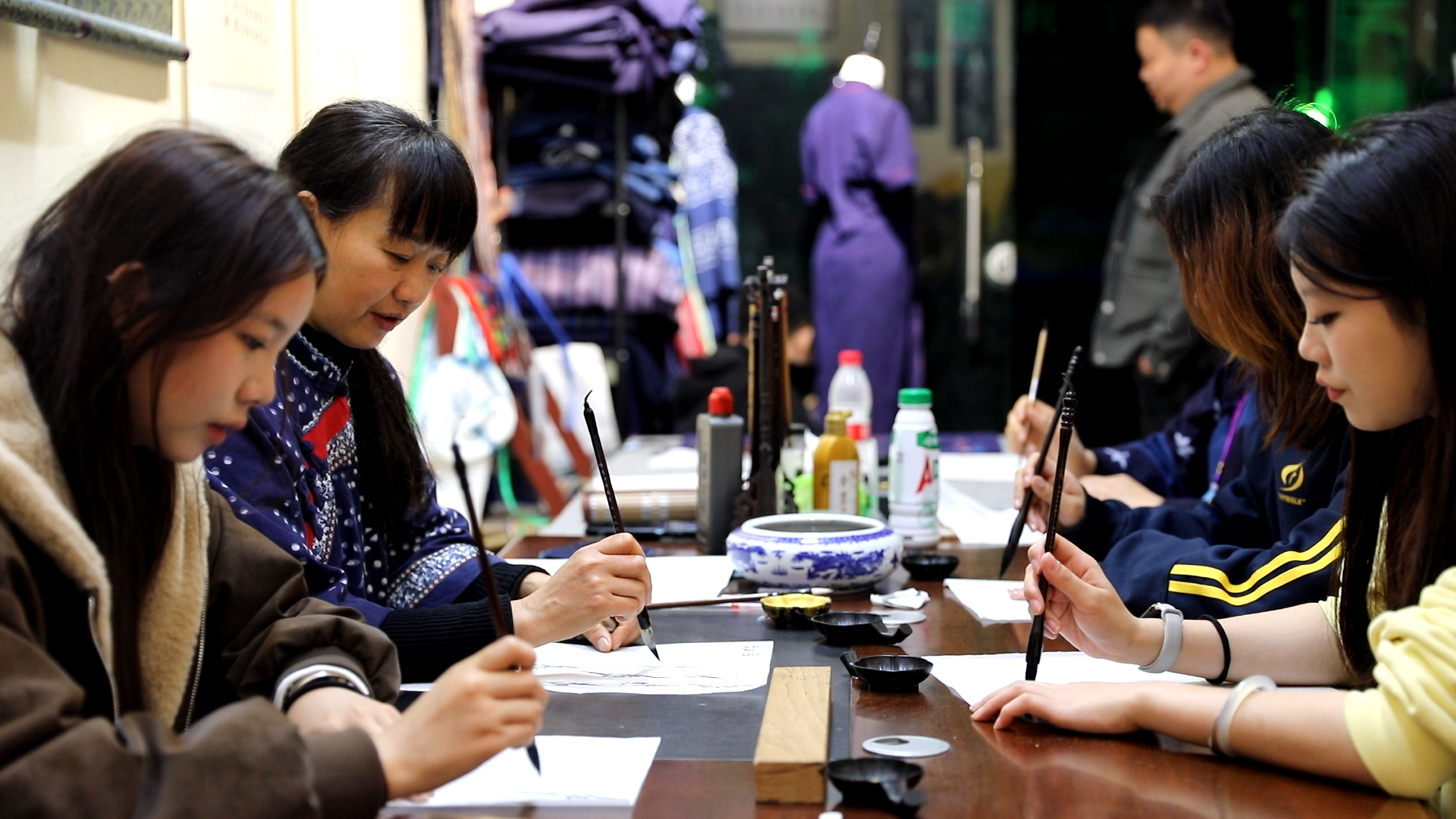非遗门店内游客正在学习女书 (廖光瑜 摄)
