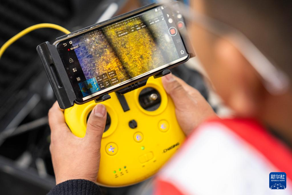 1月29日,在沪昆高铁湘江特大桥下,铁路工人操作水下机器人检测河床情况。新华社记者 陈思汗 摄pagebreak