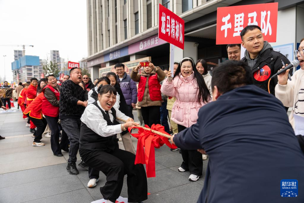 2月3日,在长沙市望城区大泽湖街道金星北路社区,市民进行拔河比赛。新华社记者 陈思汗 摄pagebreak