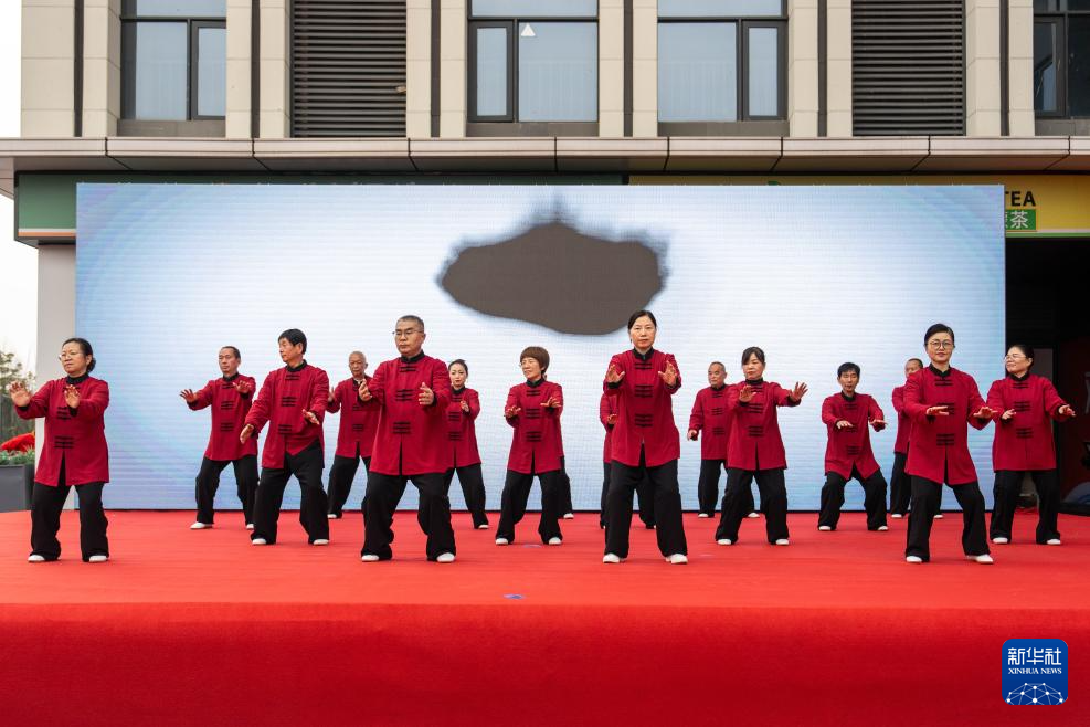 2月3日,在长沙市望城区大泽湖街道金星北路社区,市民表演太极。新华社记者 陈思汗 摄