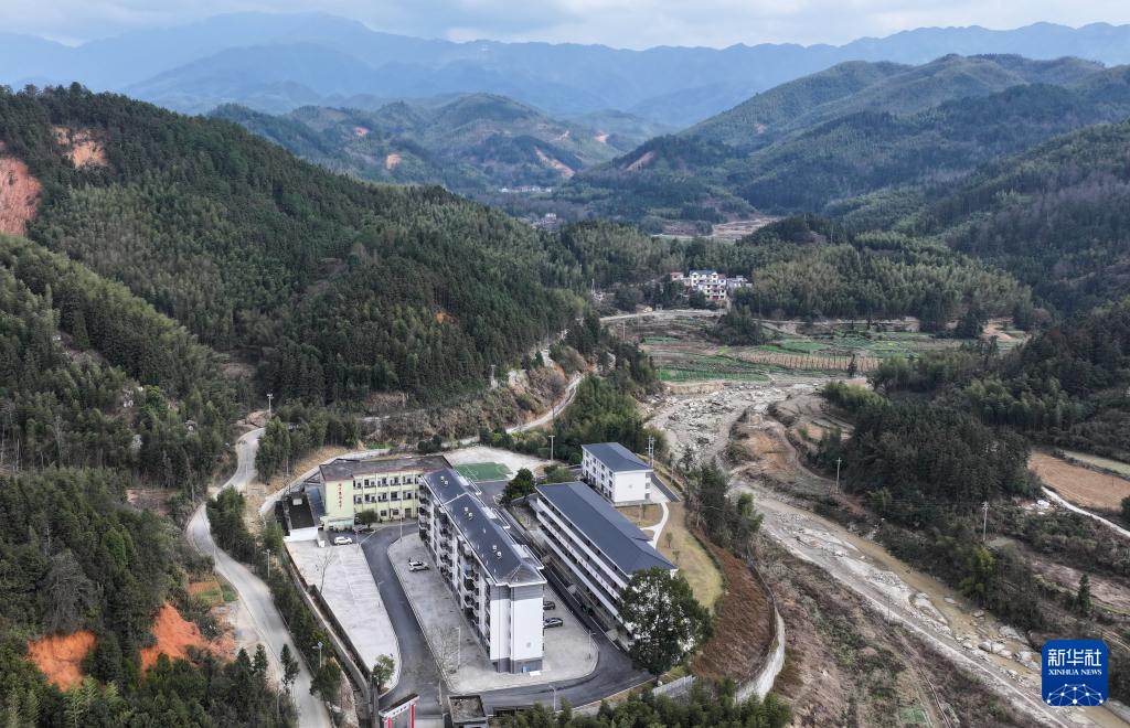这是2月5日拍摄的资兴市八面山瑶族乡集中安置点同心家园小区(无人机照片)。新华社记者 陈振海 摄