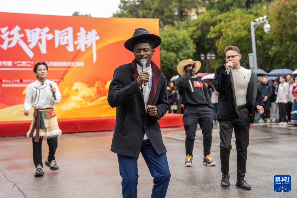 3月19日,湖南农业大学留学生在农耕体育文化活动中唱歌。新华社记者 陈思汗 摄pagebreak
