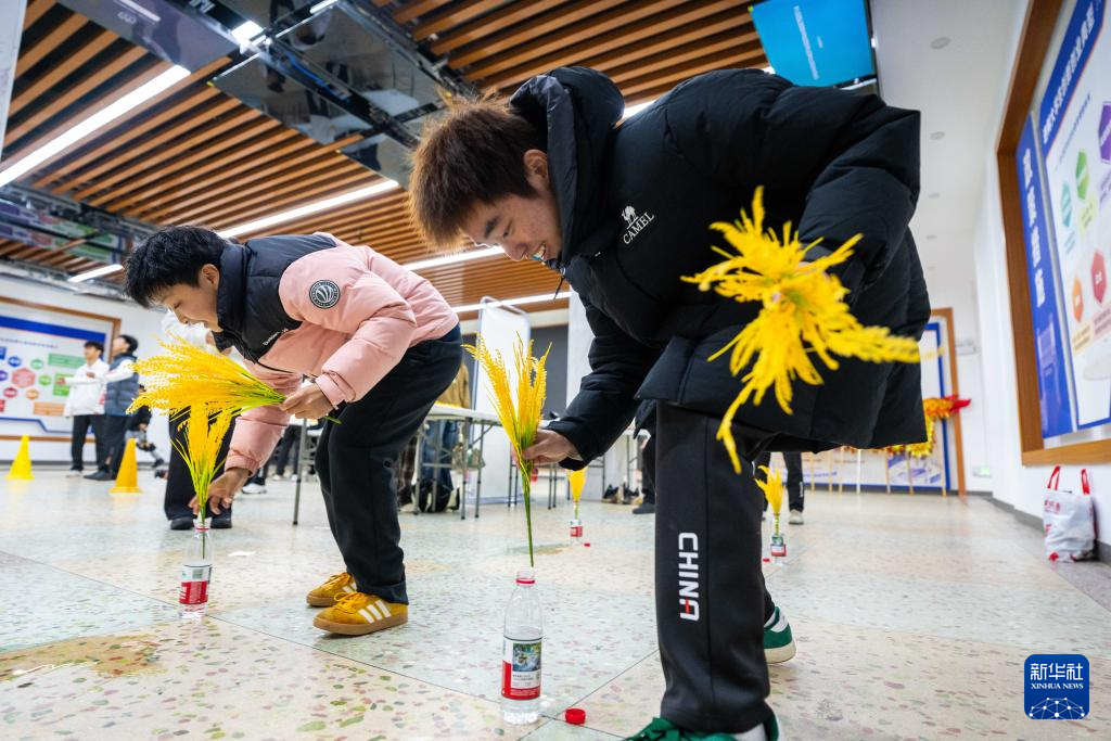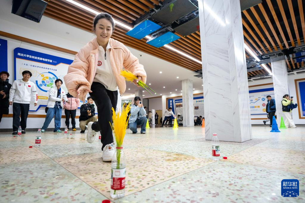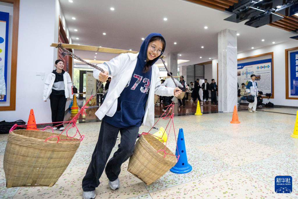 3月19日,学生在湖南农业大学参加农趣运动游戏——抢种抢收。新华社记者 陈思汗 摄