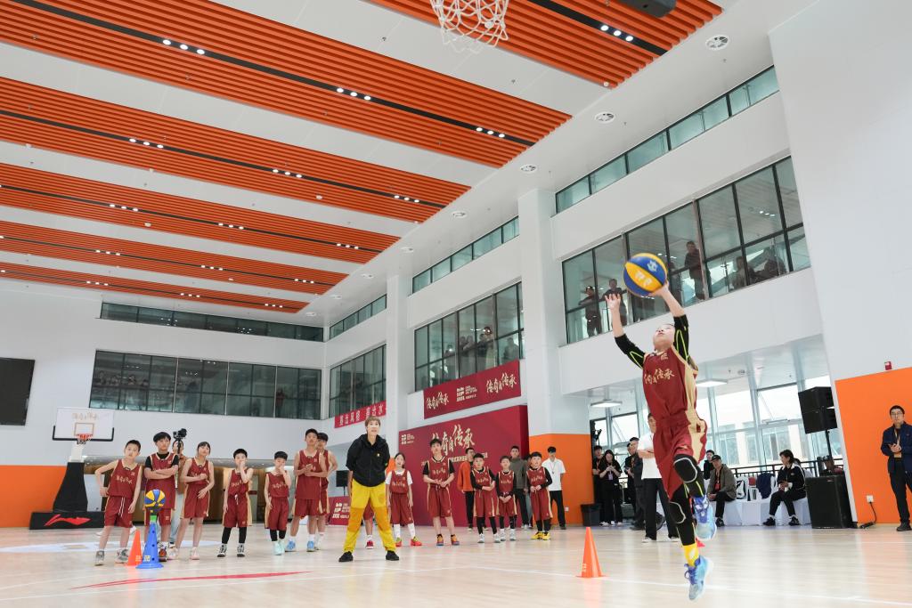 2026年4月11日,小球员在2026年中国篮球名人堂入堂仪式系列活动公益篮球训练课中练习。