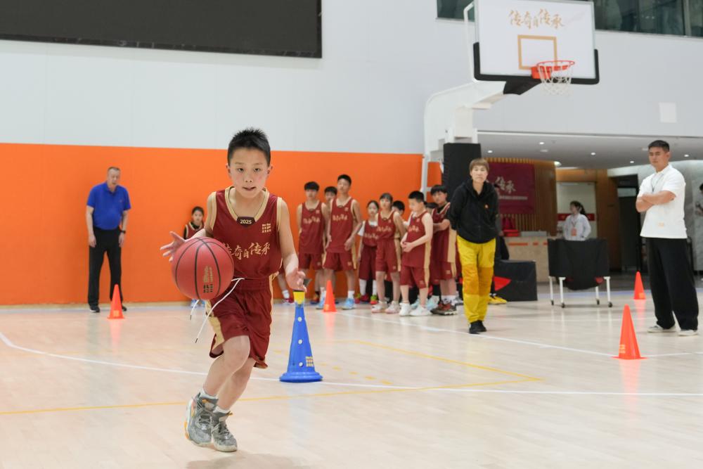 2026年4月11日,小球员在2025年中国篮球名人堂入堂仪式系列活动公益篮球训练课中练习。